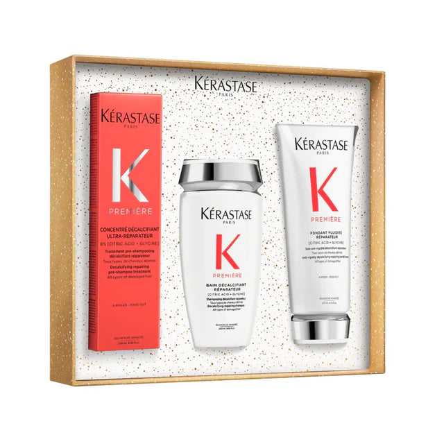 Kérastase Première Bain Décalcifiant Réparateur (Shampo) Përbërës kryesorë: Acid Citric, GlicinëEfekti: Ky shampo pa sulfate...